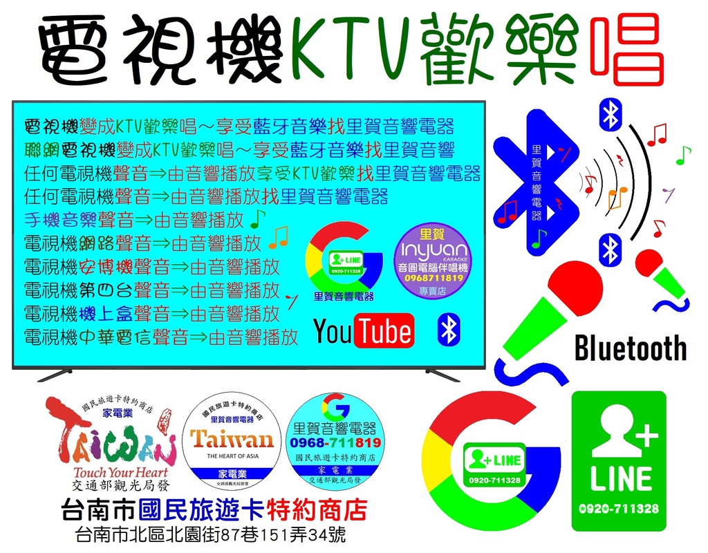 聯網電視Youtube快樂歡唱卡拉OK 藍牙音響 找里賀音響電器
