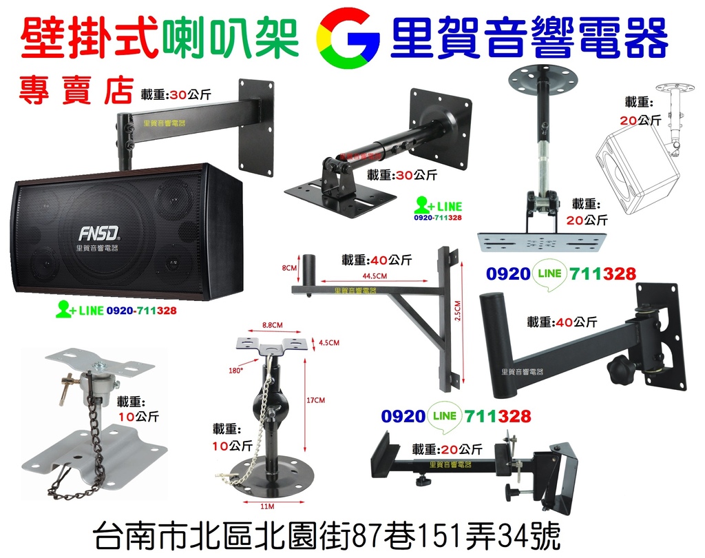 ◆里賀音響電器(台南市 0968-711819;0920-711328)