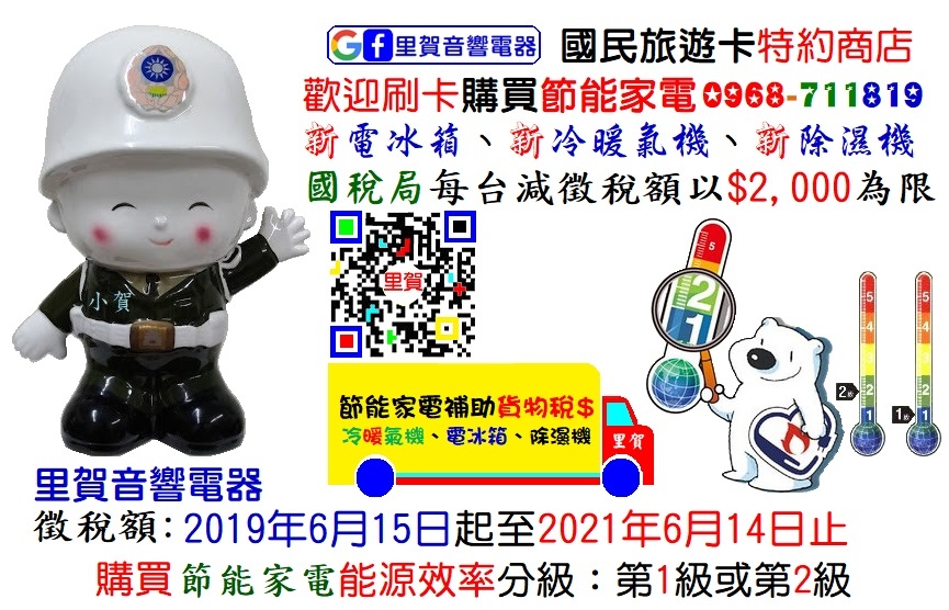 買 任何品牌 變頻冷暖氣機能源效率為第1級或第2級 減1600~2000元 歡迎洽里賀音響電器