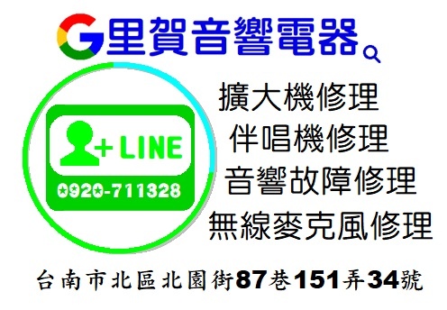 ◆里賀音響電器:704台南市北區北園街87巷151弄34號(北園街109巷直行到底、長榮路五段路橋下)