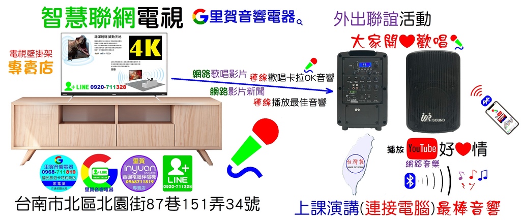 聯網電視Youtube快樂歡唱卡拉OK 藍牙音響 找里賀音響電器