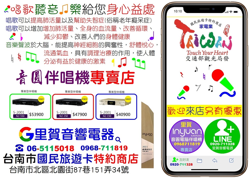音圓伴唱機經銷據點里賀音響電器 加入里賀line好友 有好康