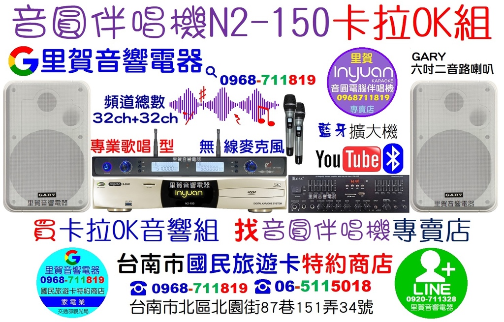 音圓伴唱機N2-150專賣店 音圓會員店 里賀音響電器 台南區音圓經銷商