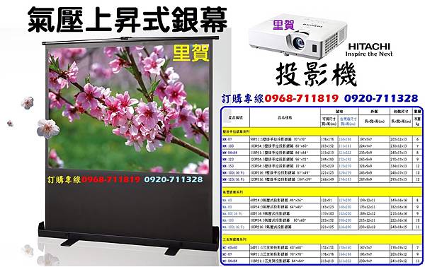 里賀 氣壓上昇式銀幕 HITACHI 投影機