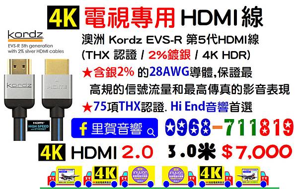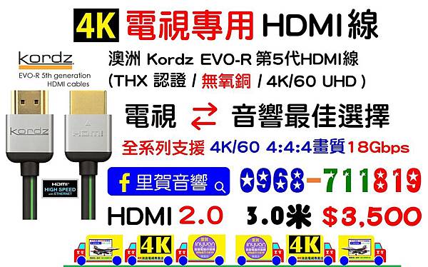 Kordz PRS3 4K HDMI專賣店里賀音響
