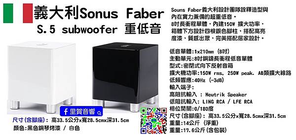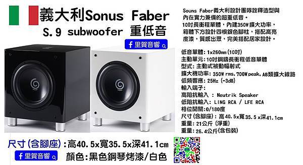 里賀 義大利Souns Faber S.9 subwoofer 重低音喇叭