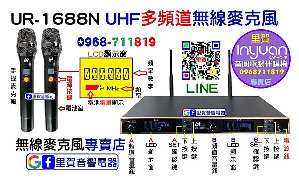 里賀UR-1688N UHF多頻道 無線麥克風專賣店