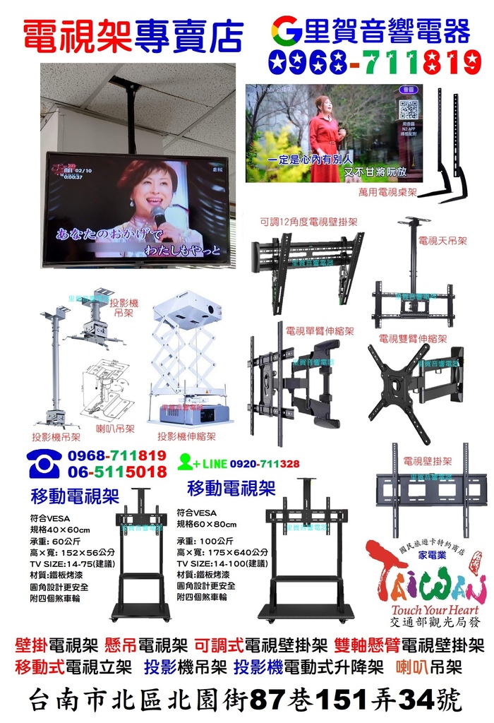 ◆里賀音響電器(台南市 0968-711819;0920-711328)