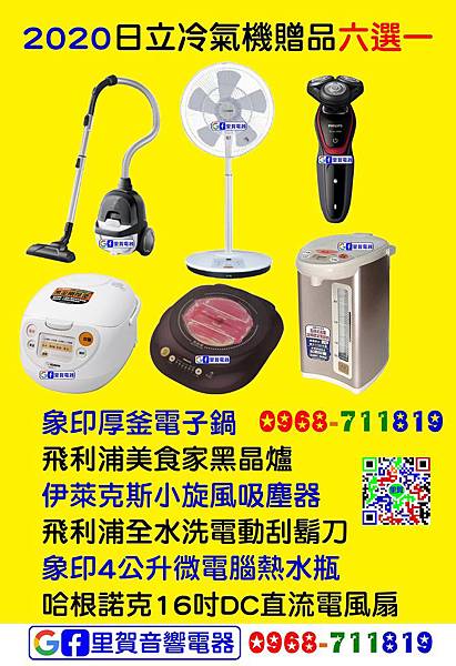 里賀電器 2020 日立 冷氣機 贈品六選一