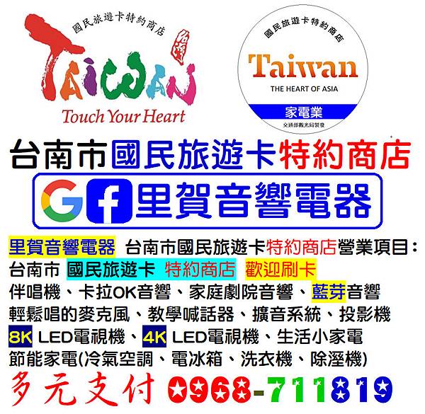 可刷卡 台南市國民旅遊卡特約商店 里賀音響電器