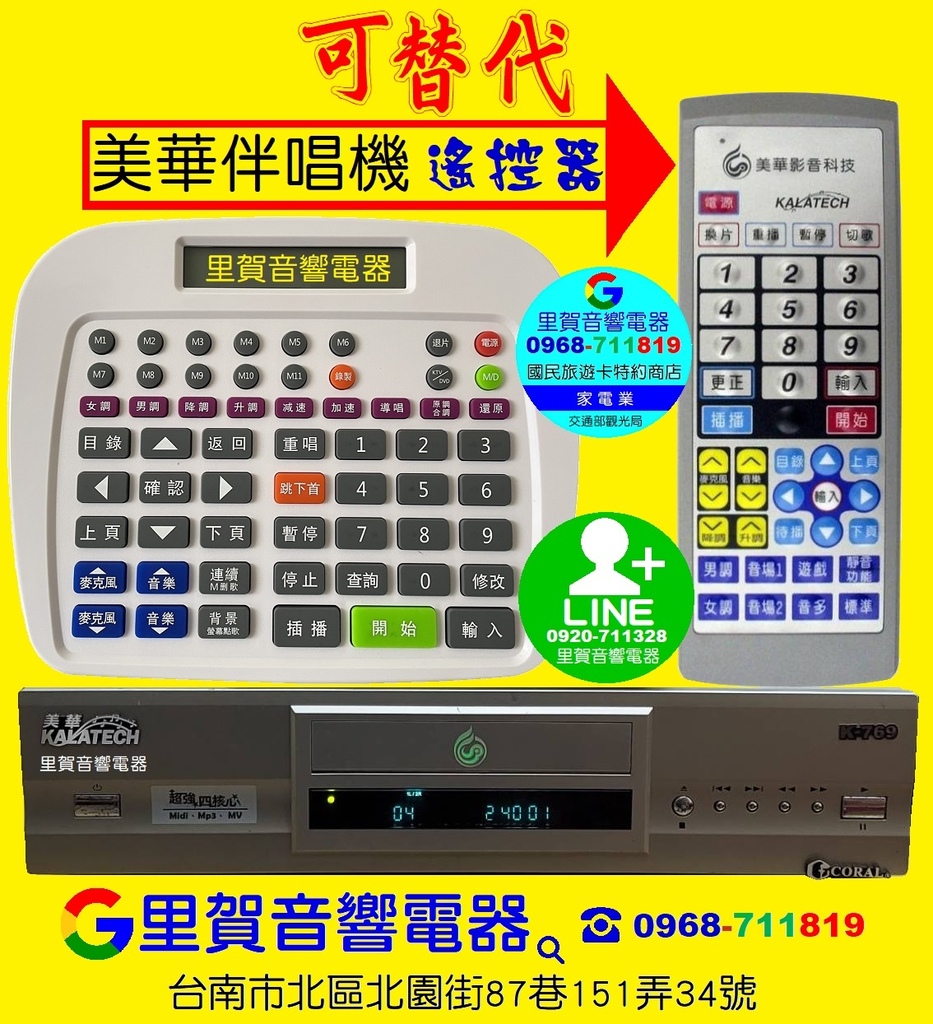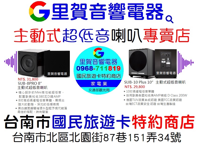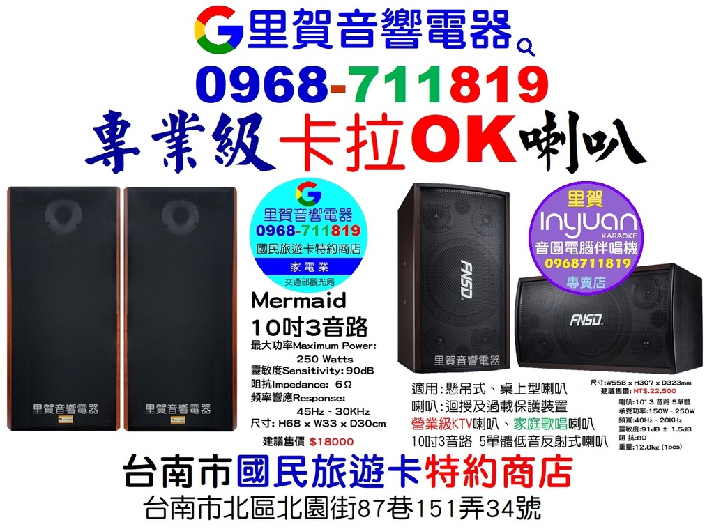 ◆里賀音響電器(台南市 0968-711819;0920-711328)