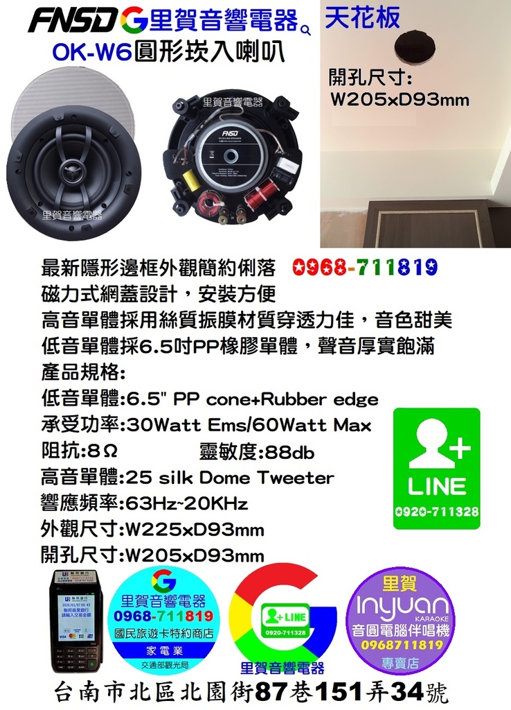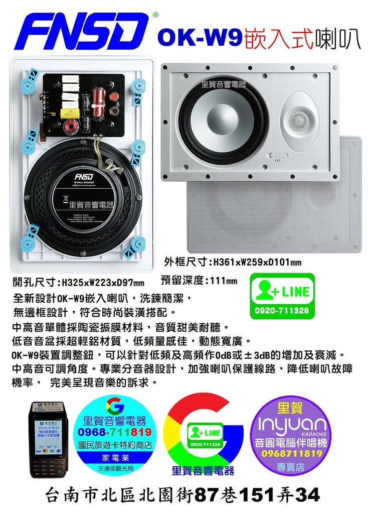 ◆里賀音響電器(台南市 0968-711819;0920-711328)