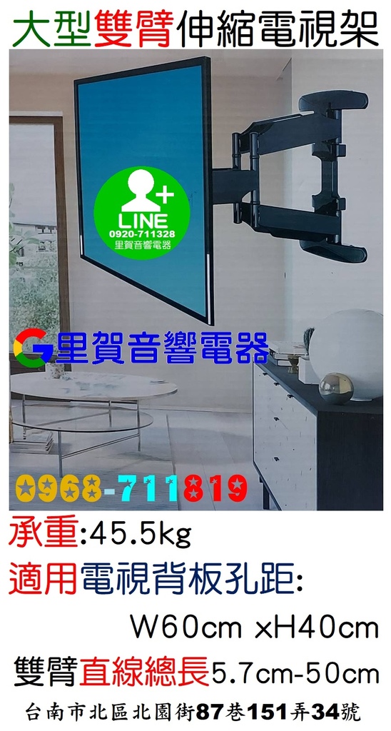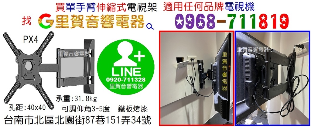 買雙手臂伸縮式電視壁掛架 找里賀音響電器