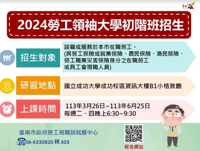 「2024勞工領袖大學初階班」,即將於113年3月26日開課,