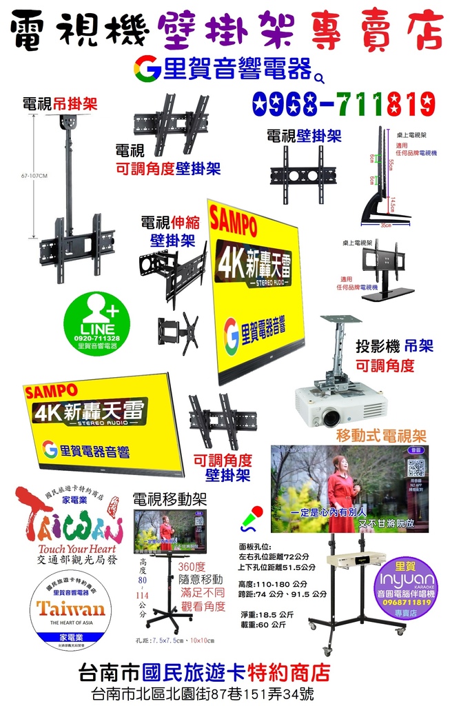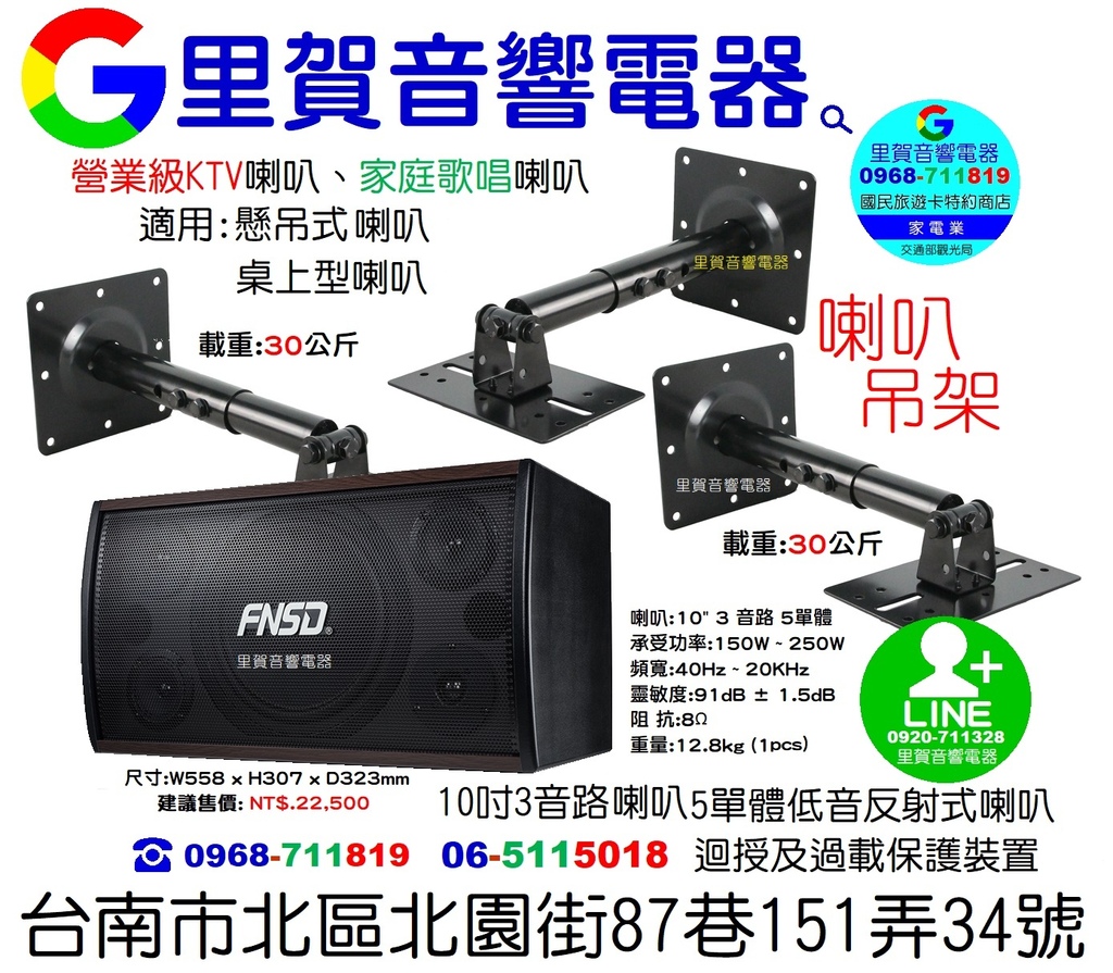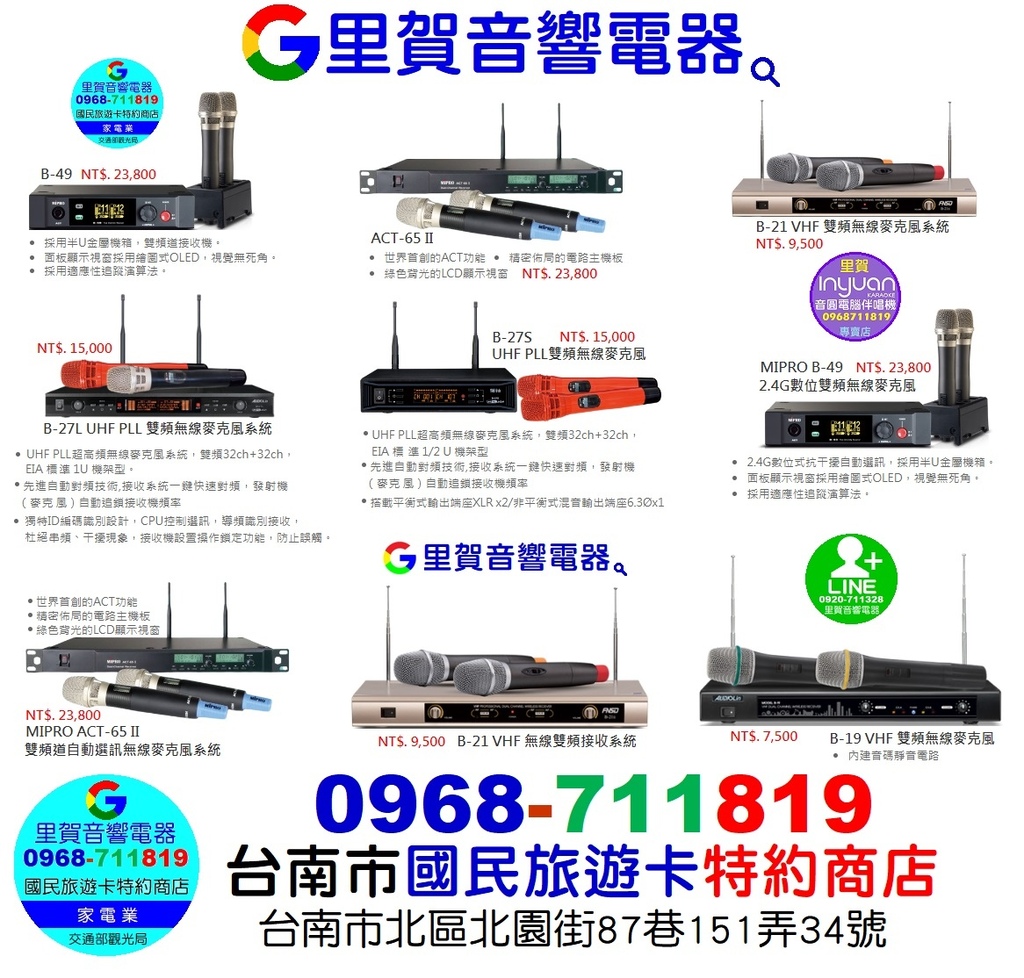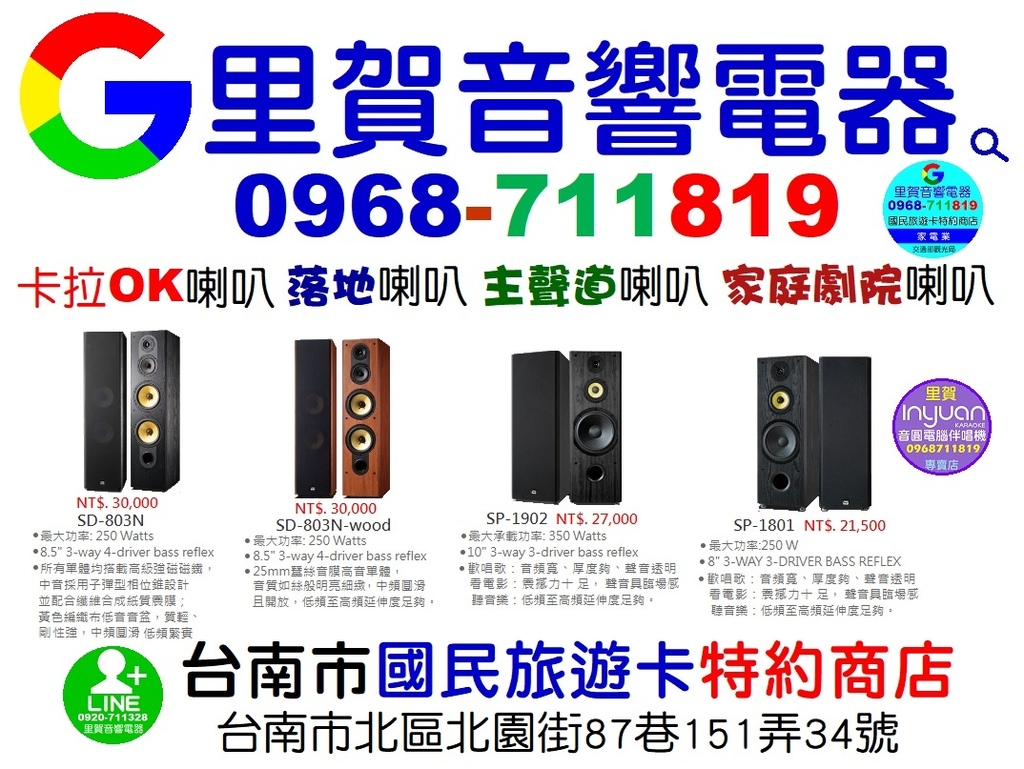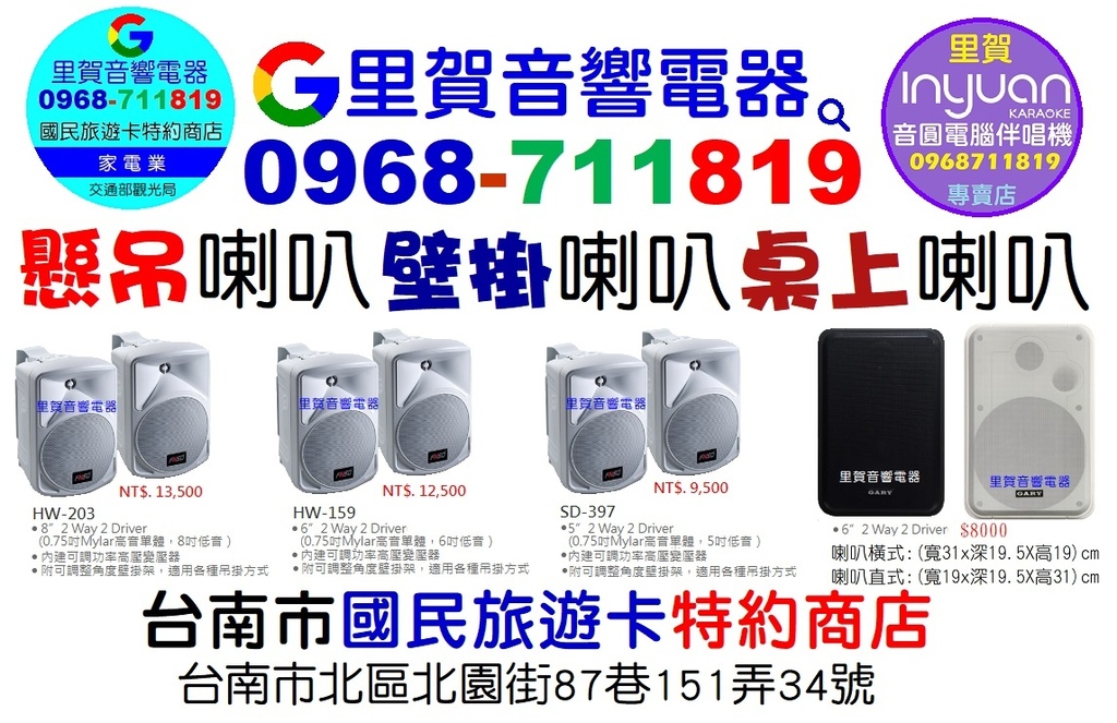 ◆里賀音響電器(台南市 0968-711819;0920-711328)