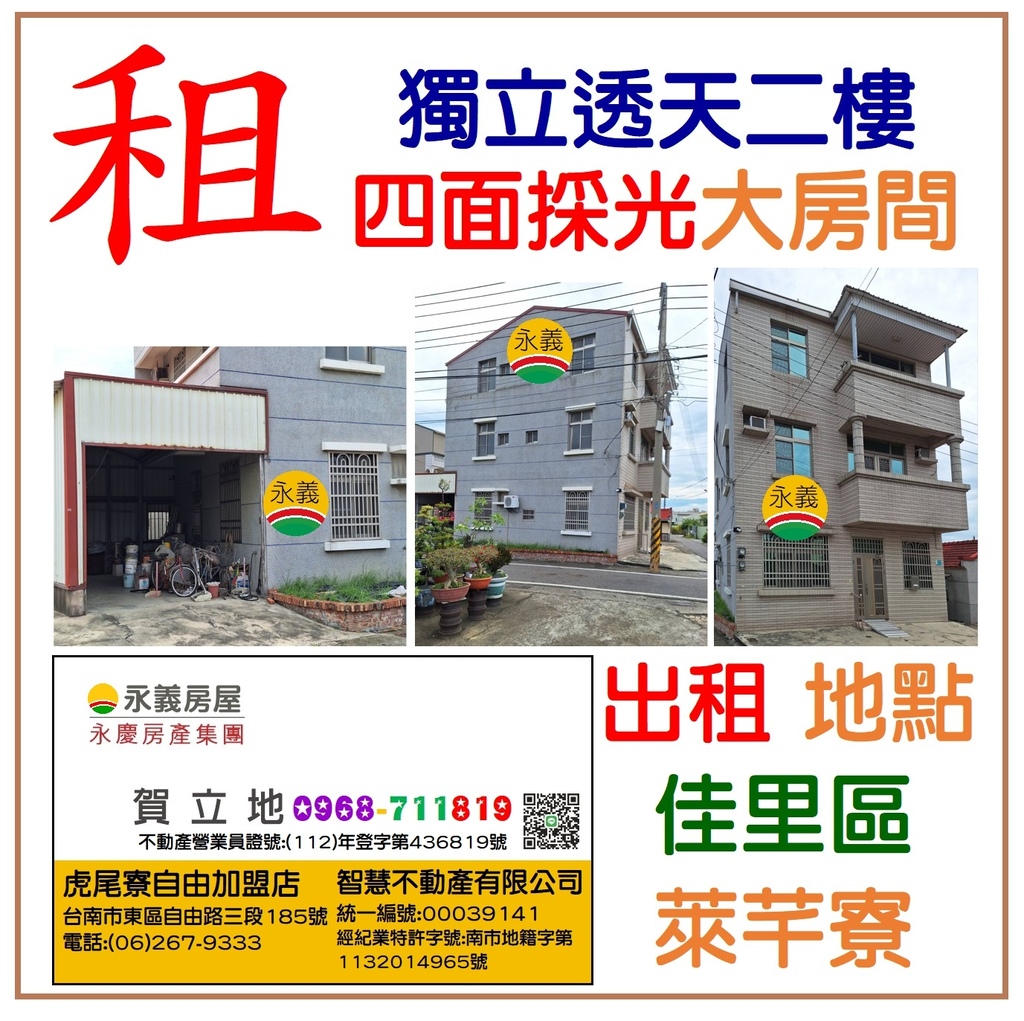 獨立透天樓房出租台南市佳里區海澄里萊竿寮有意者歡迎來電「0968711819」賀立地