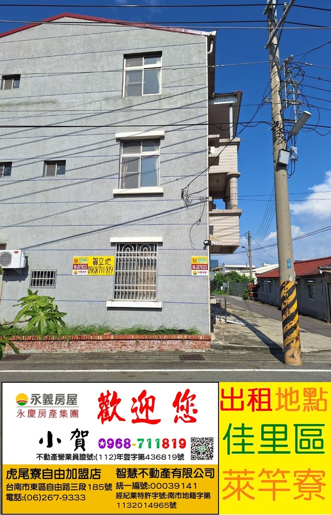 出租台南市佳里區海澄里萊竿寮獨立透天樓房 有意者歡迎來電「0968711819」賀立地