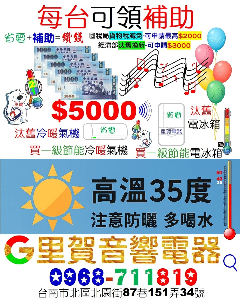 ◆里賀音響電器(台南市 0968-711819;0920-711328)